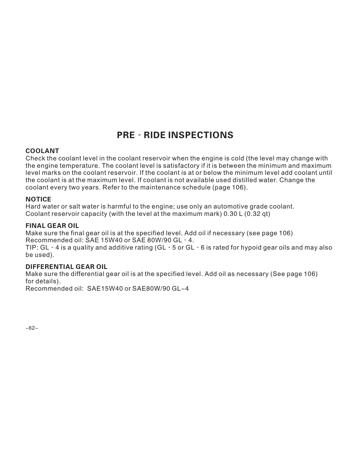 coolant every two years. Refer to the maintenance schedule (page 106).