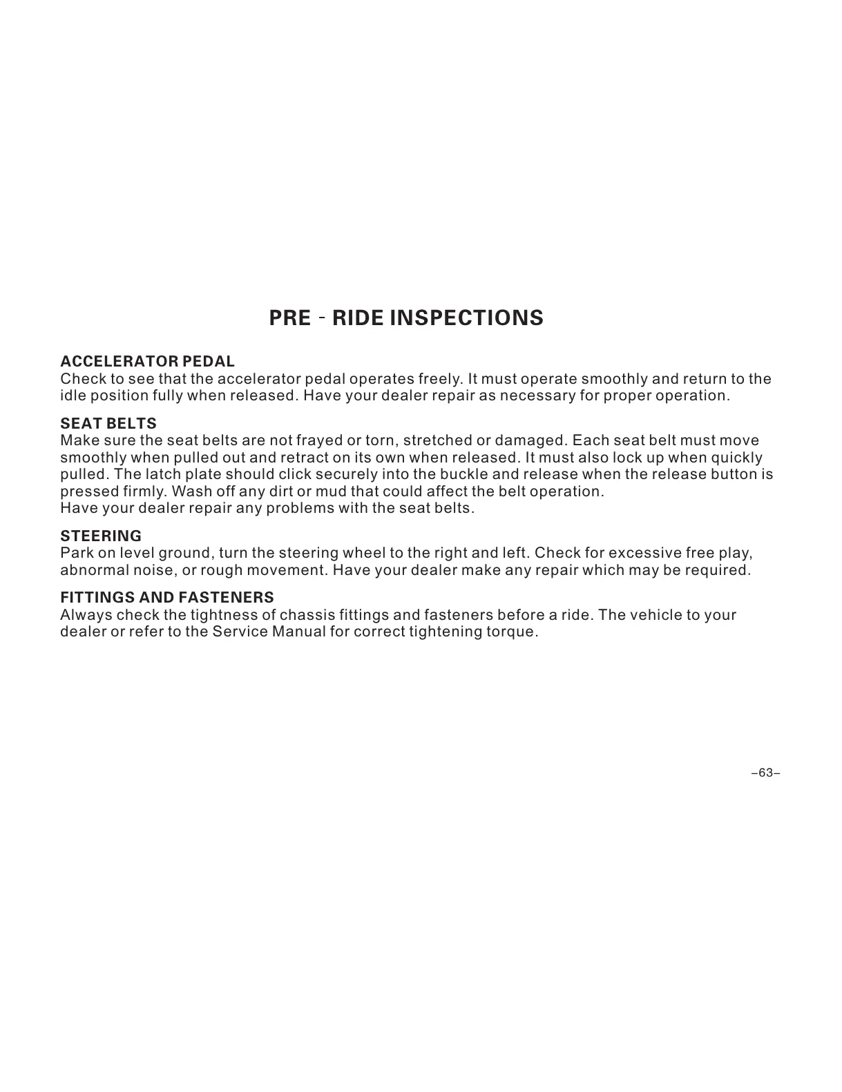 Always check the tightness of chassis fittings and fasteners before a ride. The vehicle to your
