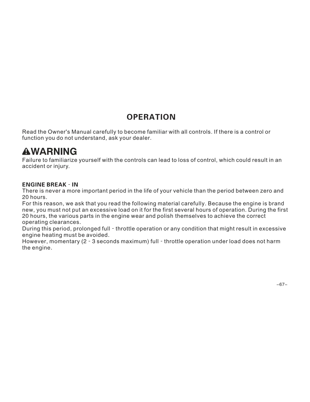 ENGINE BREAK‐IN