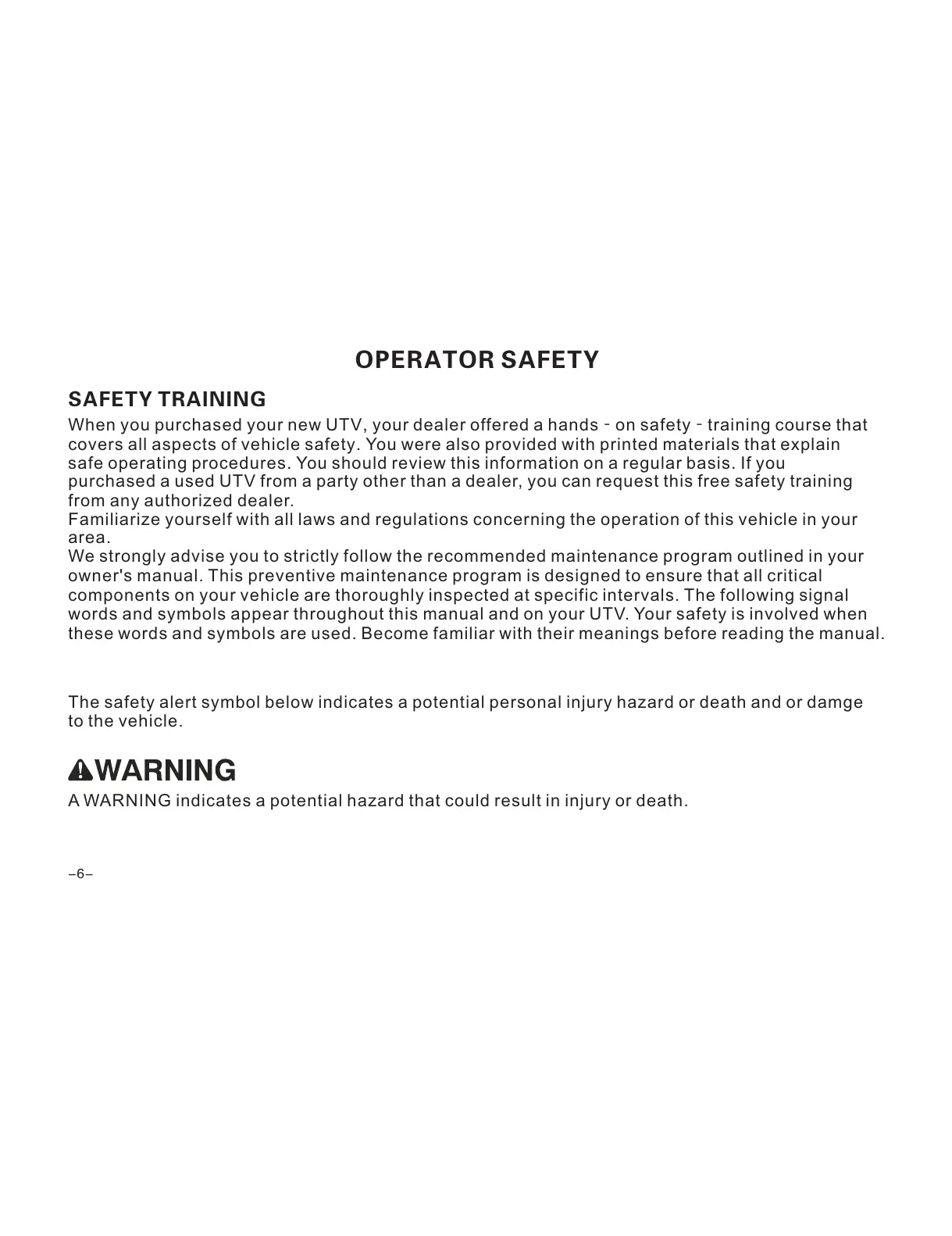 words and symbols appear throughout this manual and on your UTV. Your safety is involved when
