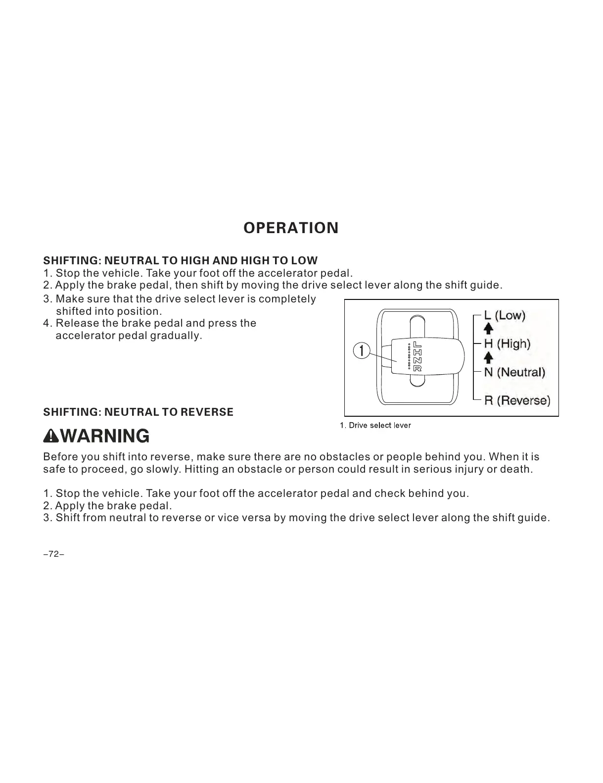 3. Shift from neutral to reverse or vice versa by moving the drive select lever along the shift guide.