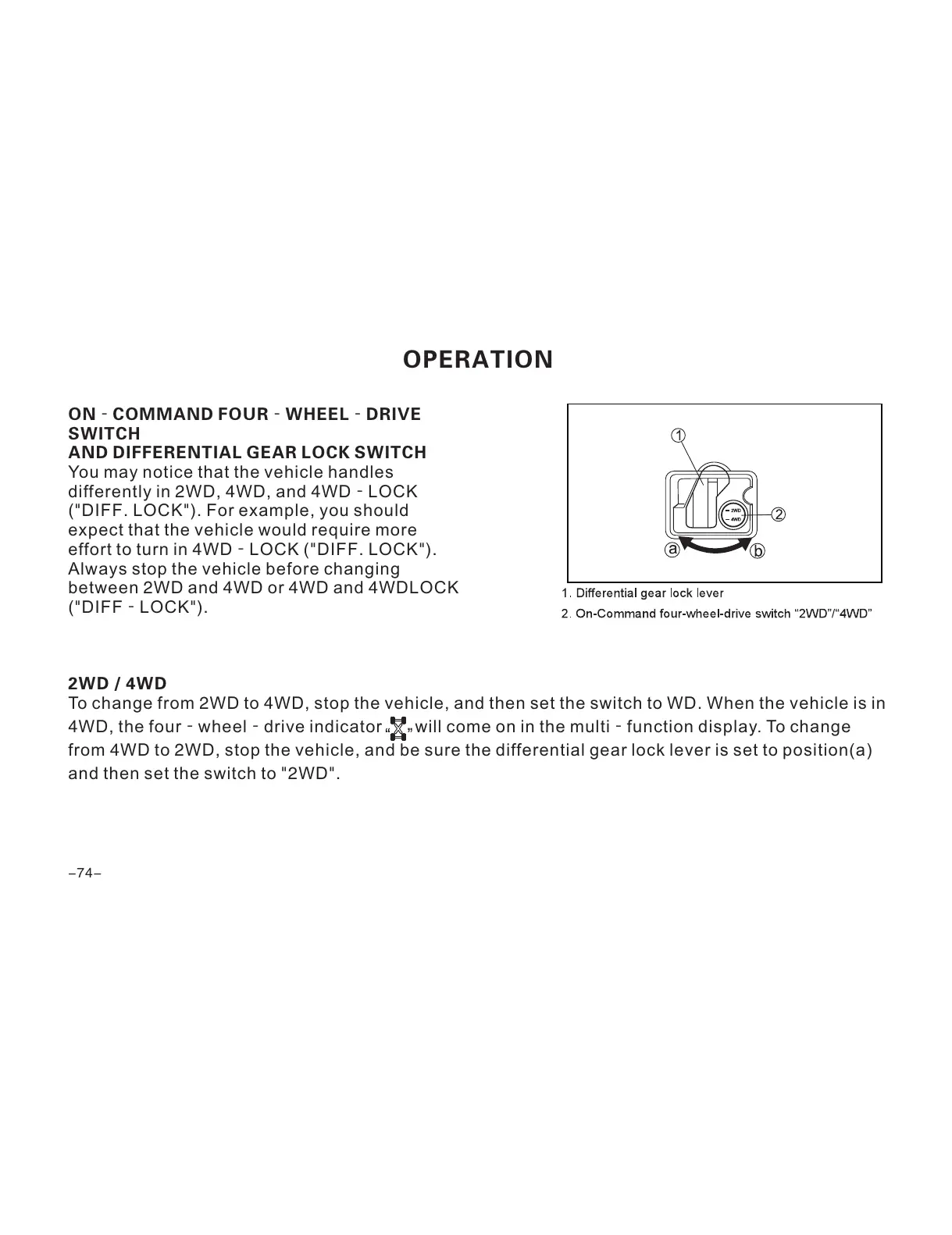 from 4WD to 2WD, stop the vehicle, and be sure the differential gear lock lever is set to position(a)