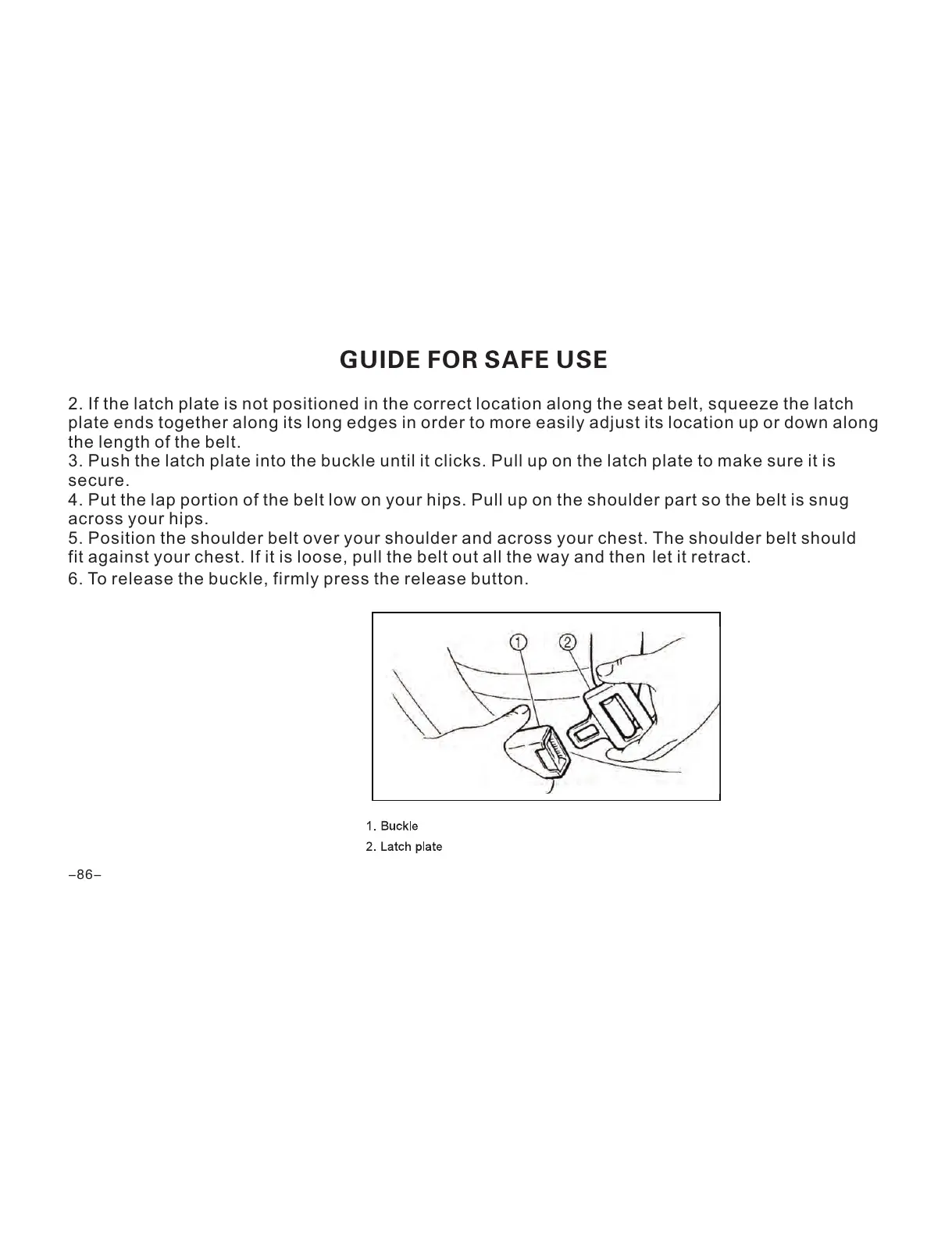 2. If the latch plate is not positioned in the correct location along the seat belt, squeeze the latch