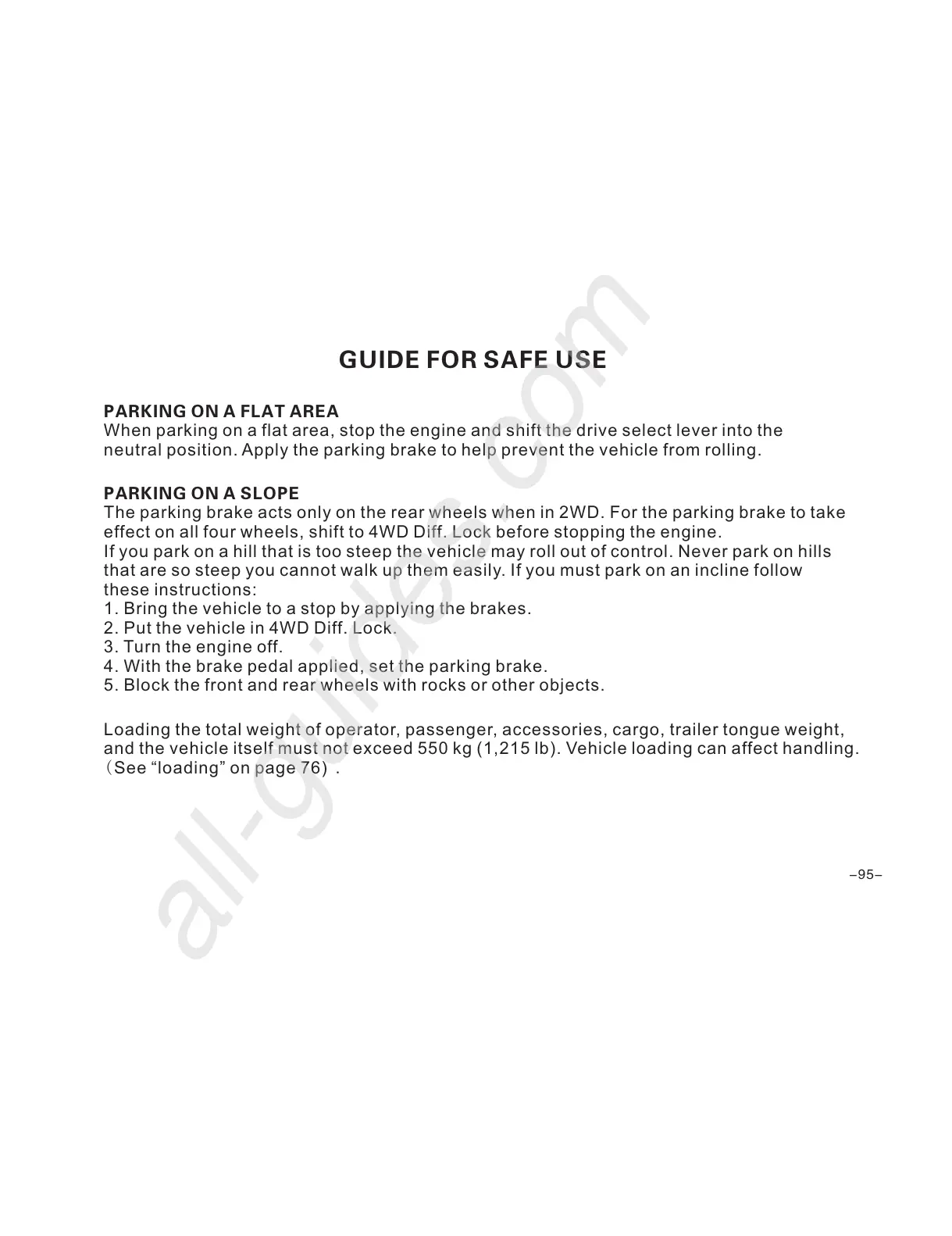 and the vehicle itself must not exceed 550 kg (1,215 lb). Vehicle loading can affect handling.