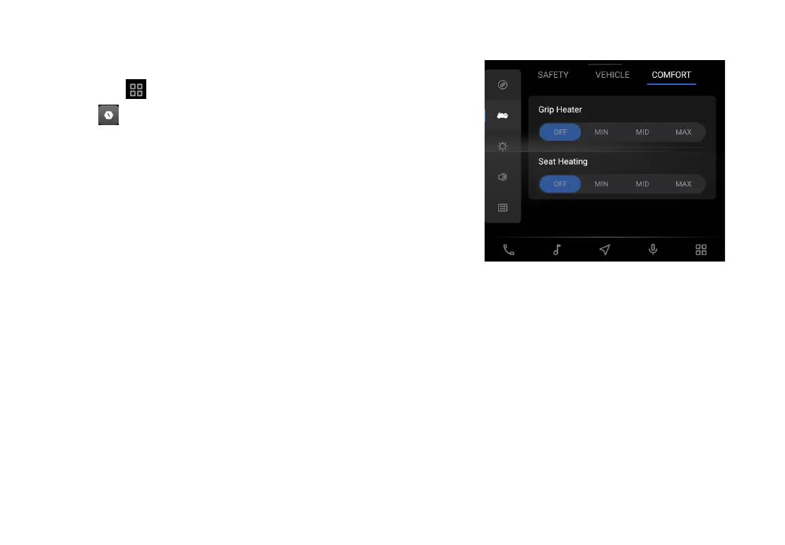 Click Comfort to set up grip heater and seat heating;