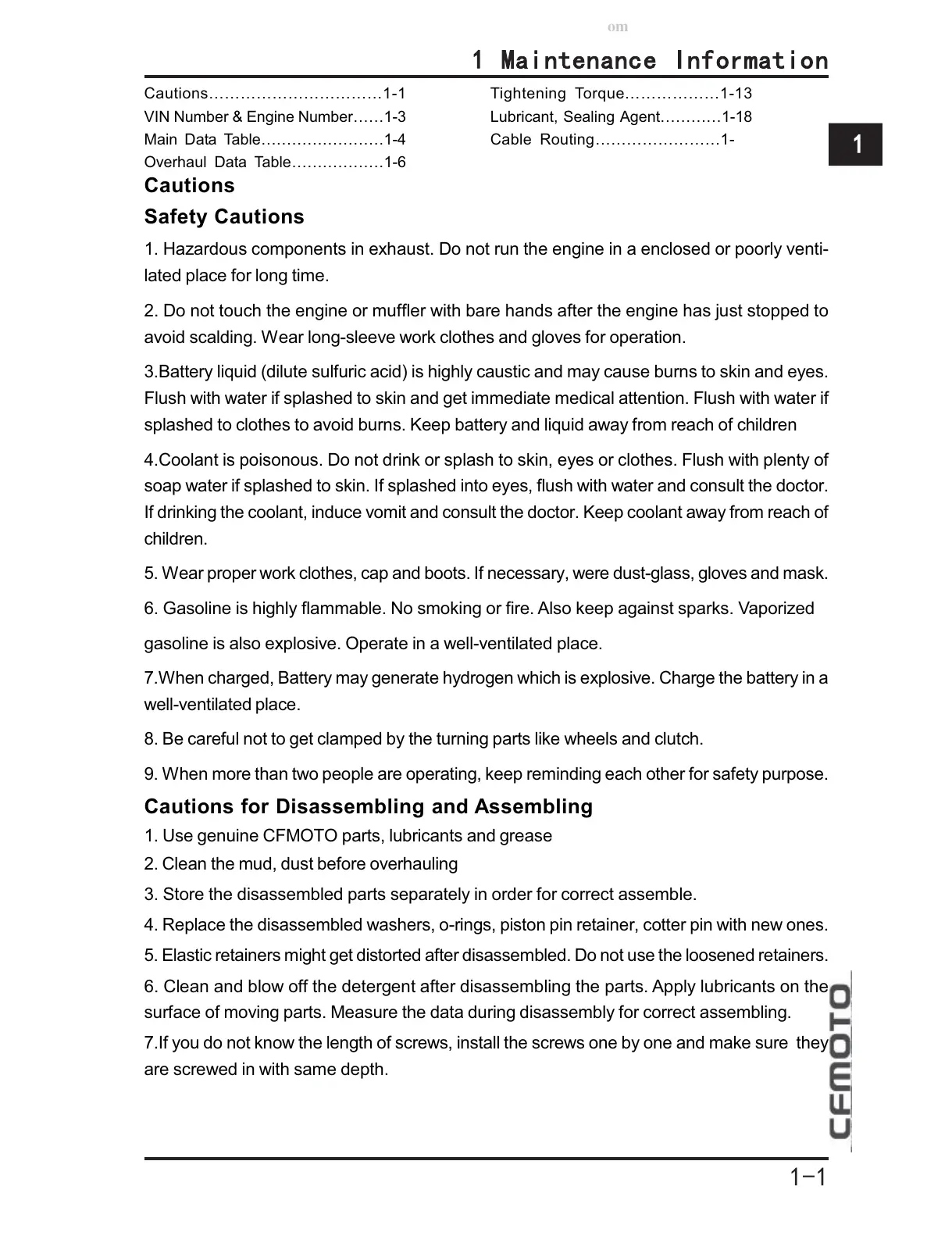 Cautions……………………………1-1