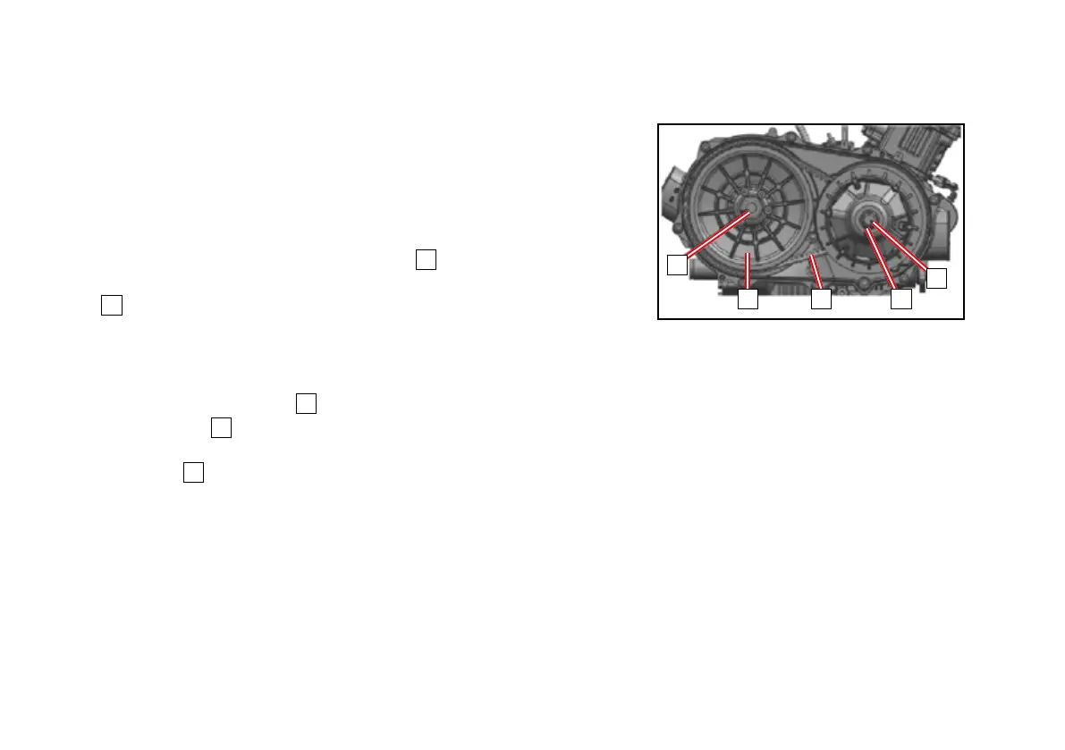 A CVT housing and cover encloses the clutches and belt assembly.
