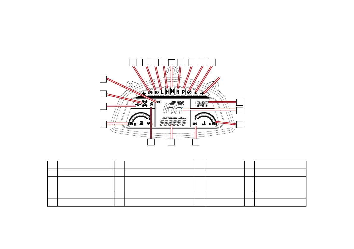 5 Neutral 10 Tail Light ‘ON’ 15 Speedometer