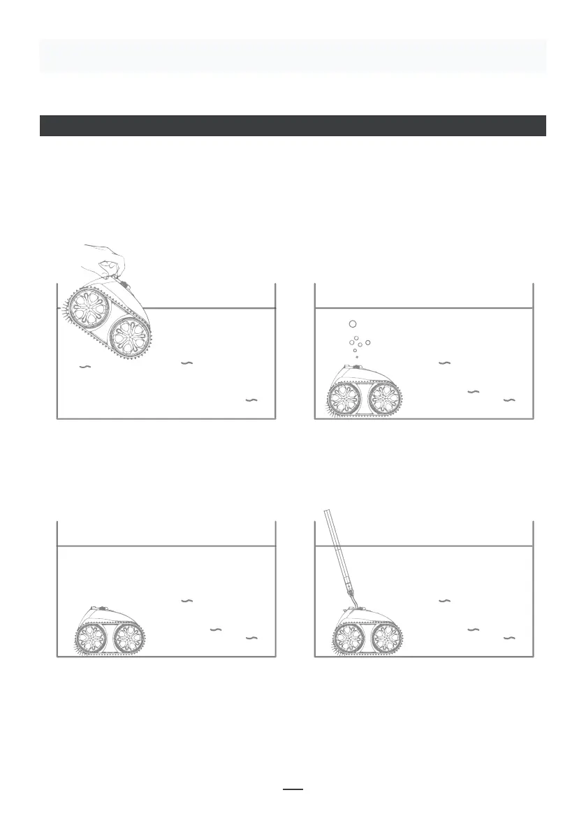 • Tauchen Sie das Gerät mit dem Boden zur Wand ins Becken. Halten Sie den Roboter