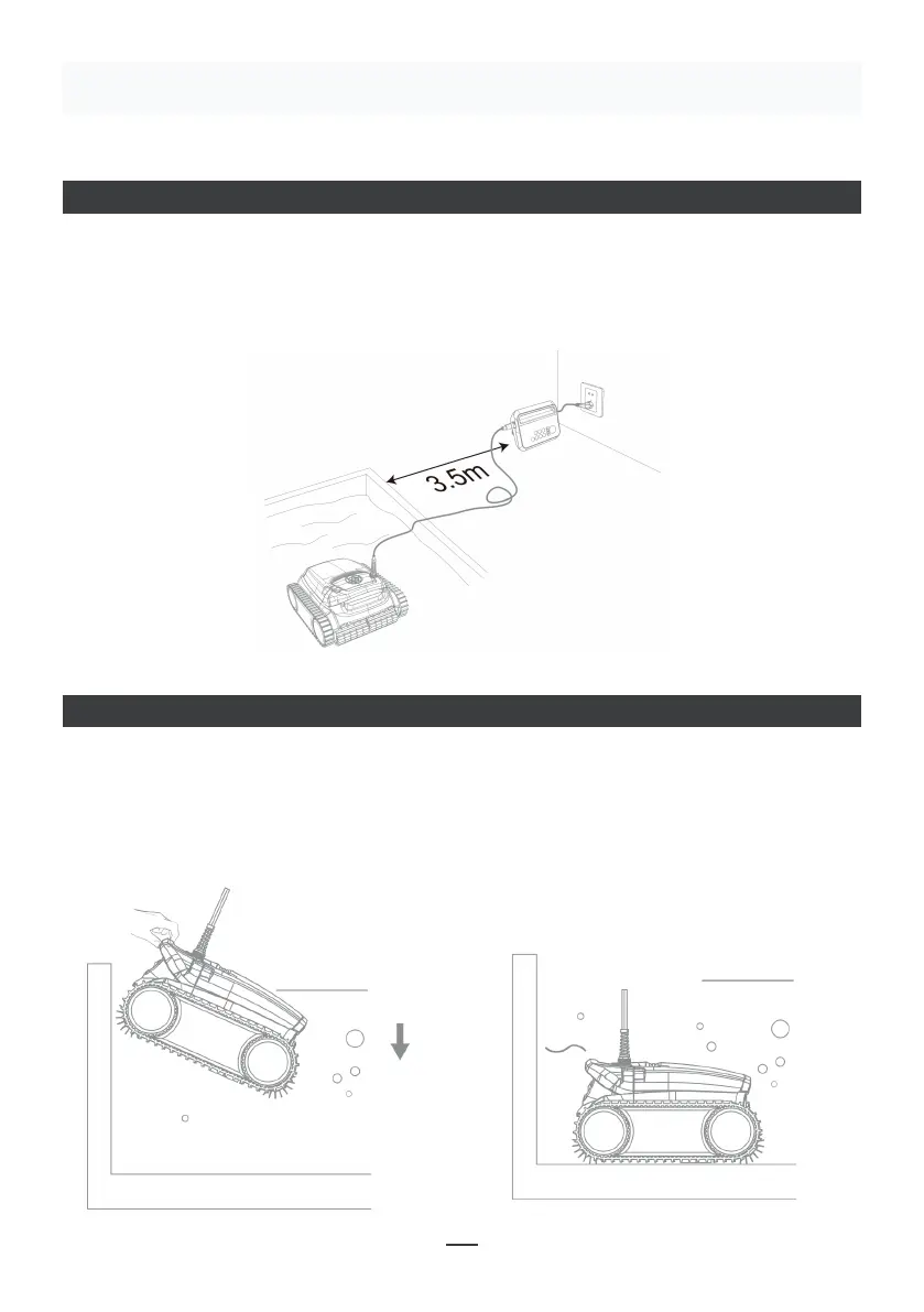 • Prilikom stavljanja čistača u bazen, dno čistača mora biti okrenuto prema zidu bazena,