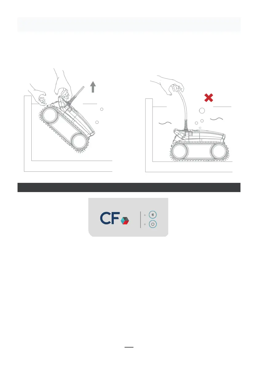 • Când scoateți aparatul din piscină, folosiți doar mânerul, nu trageți de cablu.