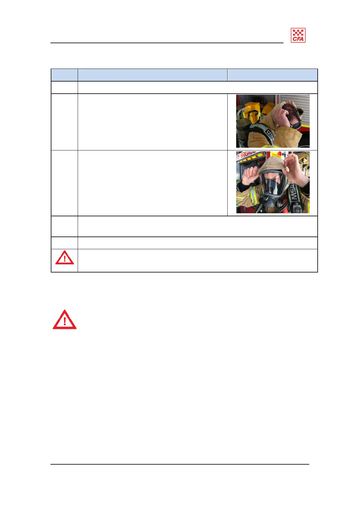 Don the BA before entering the hazardous area (i.e. while still in the