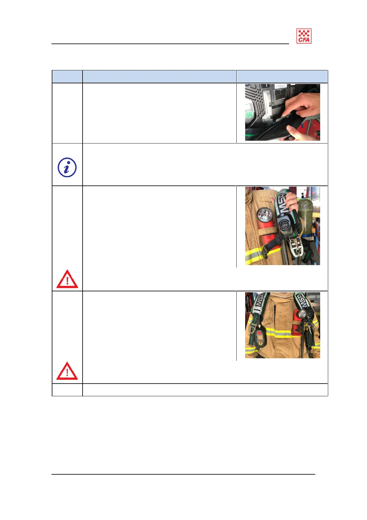 2 Don the BA harness with cylinder fitted.