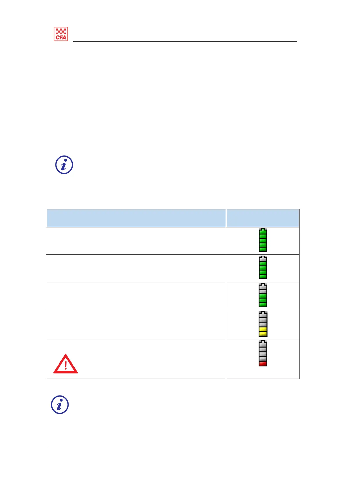 Table 1 summarises the battery charge status and icons.