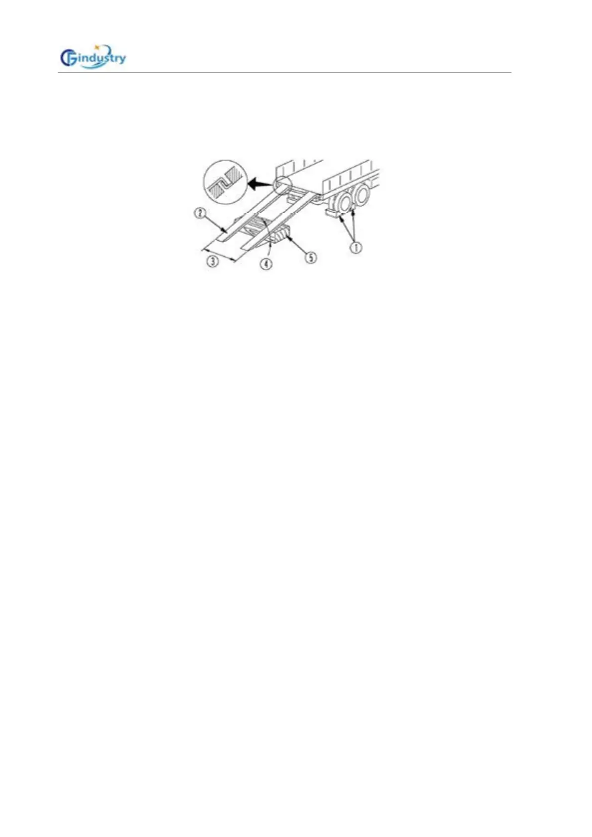 ①Stoppers ②Ramp ③Spacing of ramp ④The ramp angle is under 15° ⑤Blocks