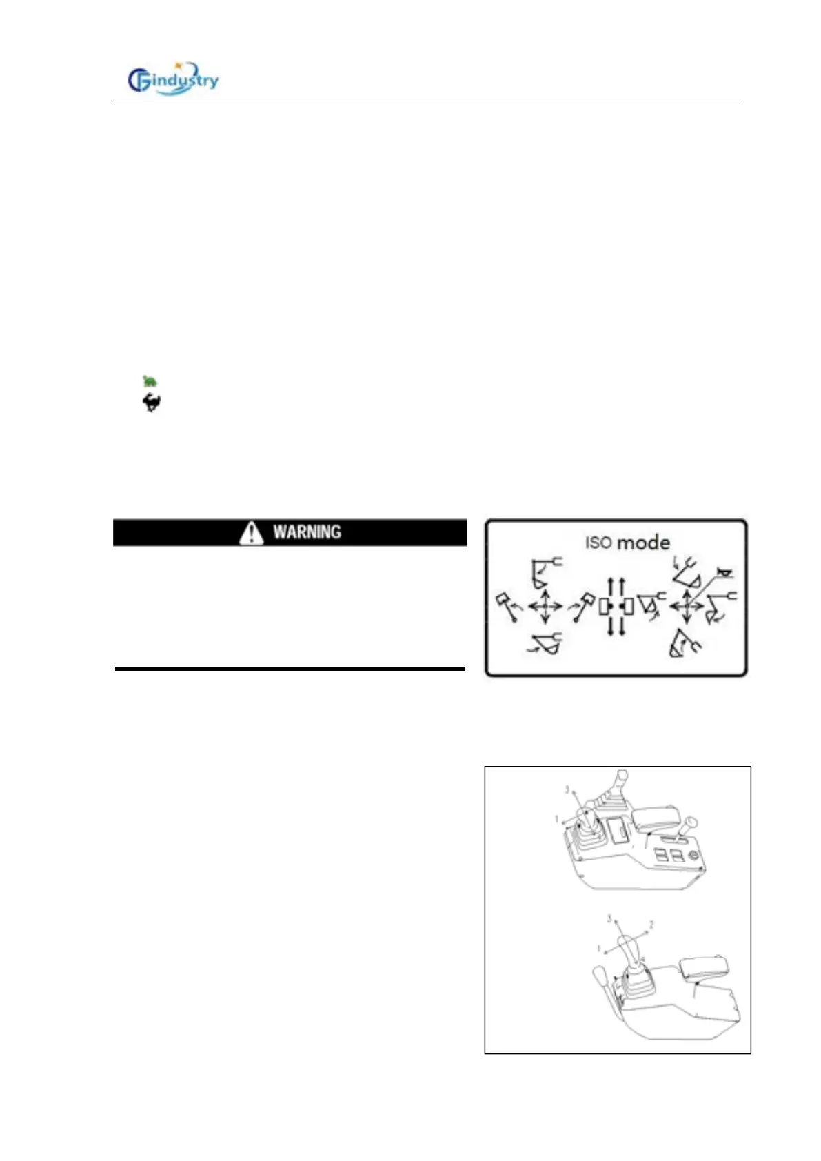 Left work equipment control lever is used to turn and operate the arm.
