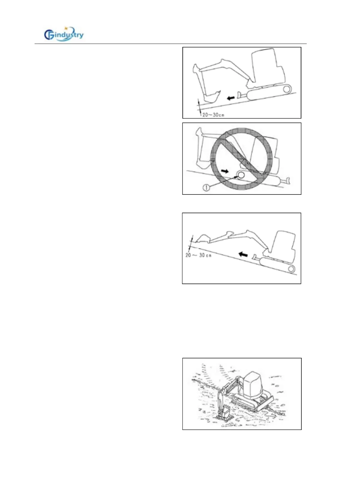 If the engine stops when traveling uphill, move the travel levers to the middle position, lower the