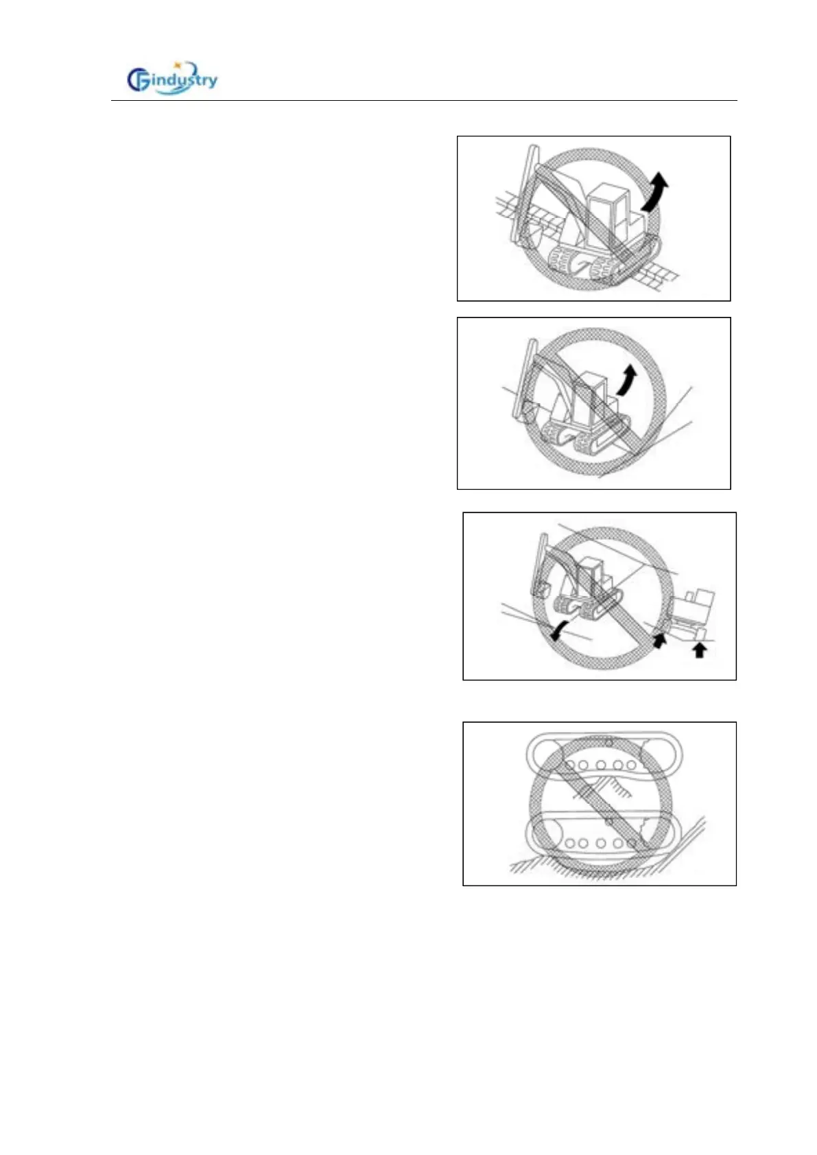 track lifted (machine inclination of more than 10