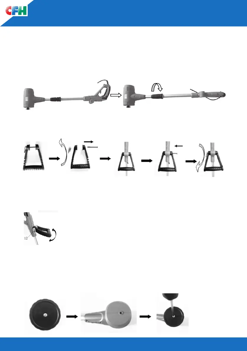 Instellen van de hoek van de extra handgreep (zie afbeelding)