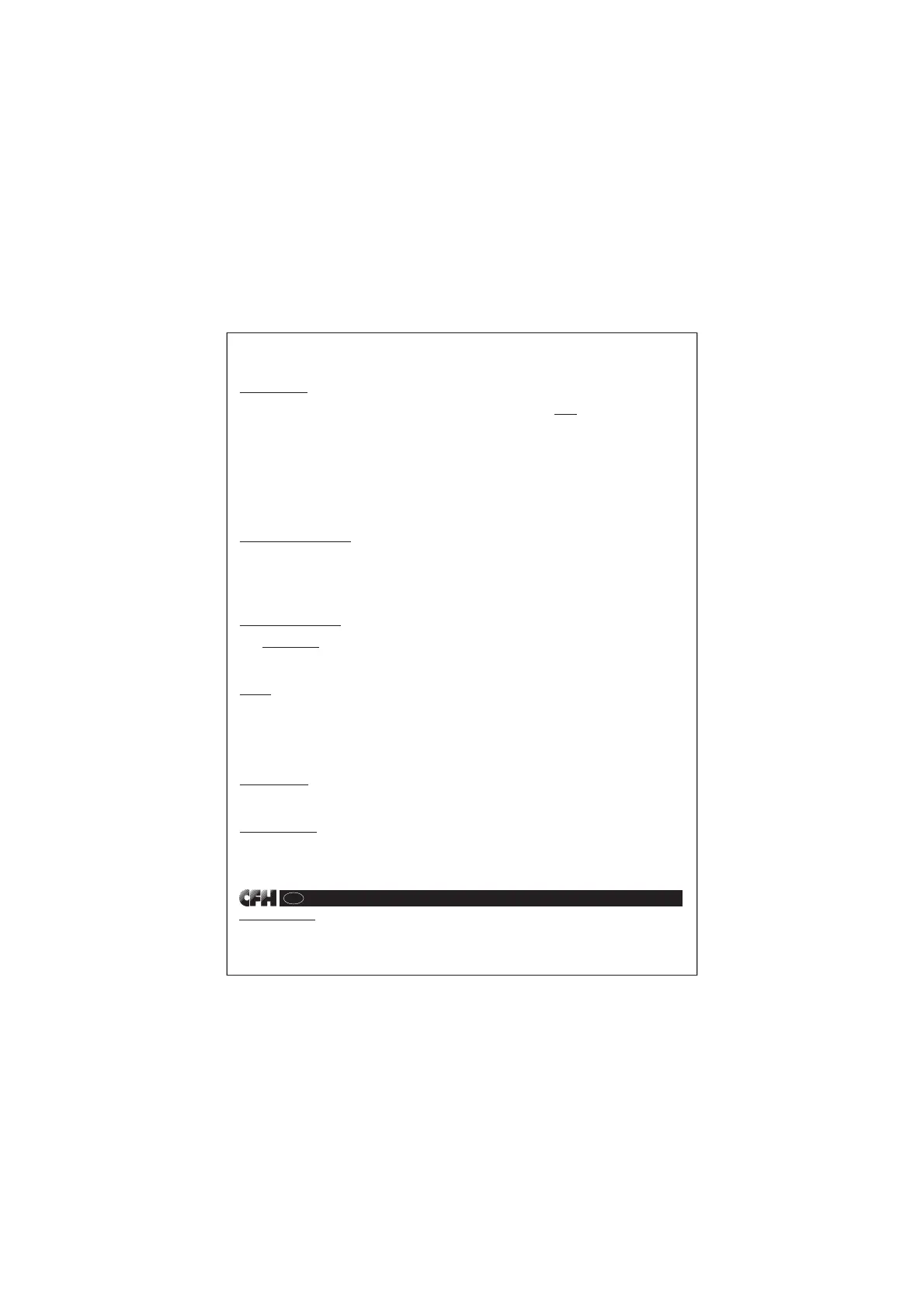 ja pakkaus jäävät takuutapauksessa ostajan maksettaviksi. CFH pidättää itselleen oikeuden