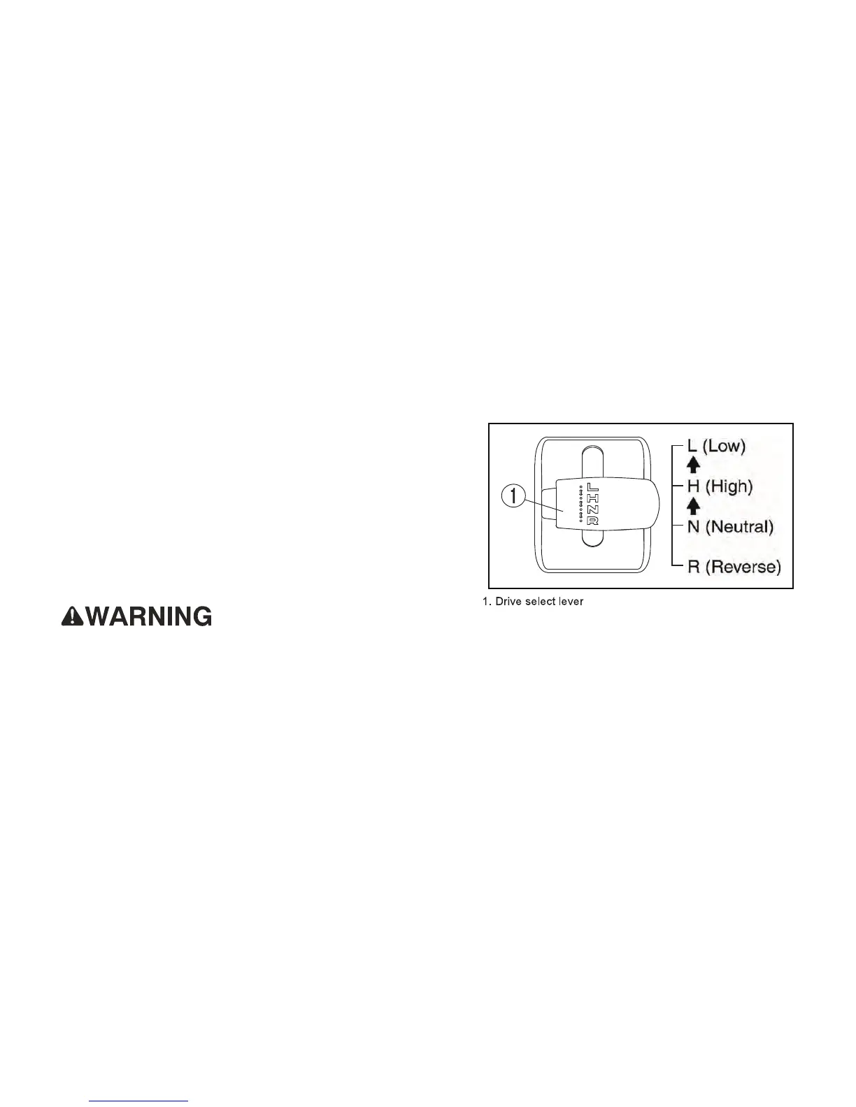 3. Shift from neutral to reverse or vice versa by moving the drive select lever along the shift guide.