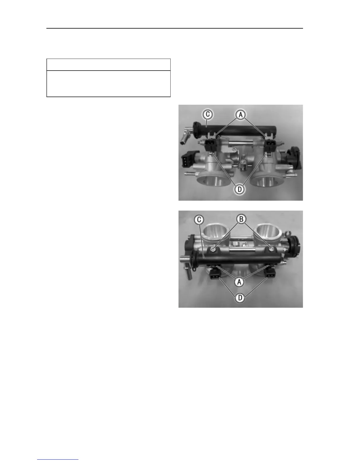 Remove the fuel injector [D].