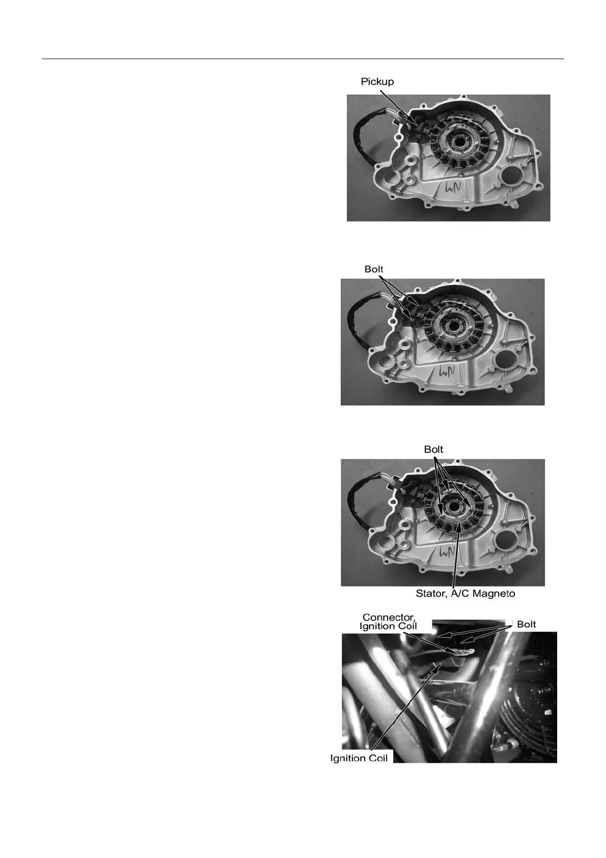 Loosen bolt, remove AC magneto stator and pickup.
