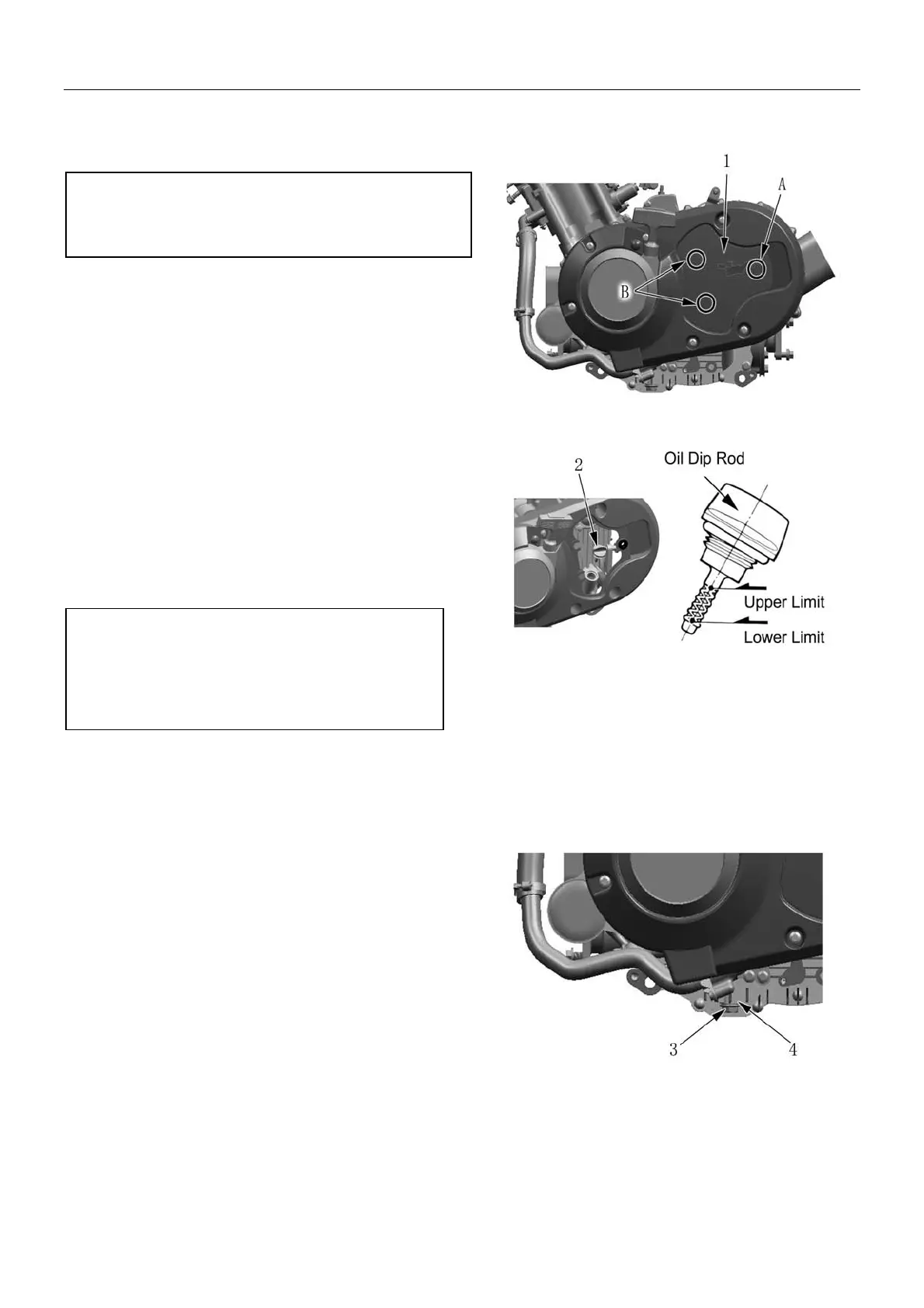 z Remove left side cover 1, oil dip rod 2, drain bolt 3