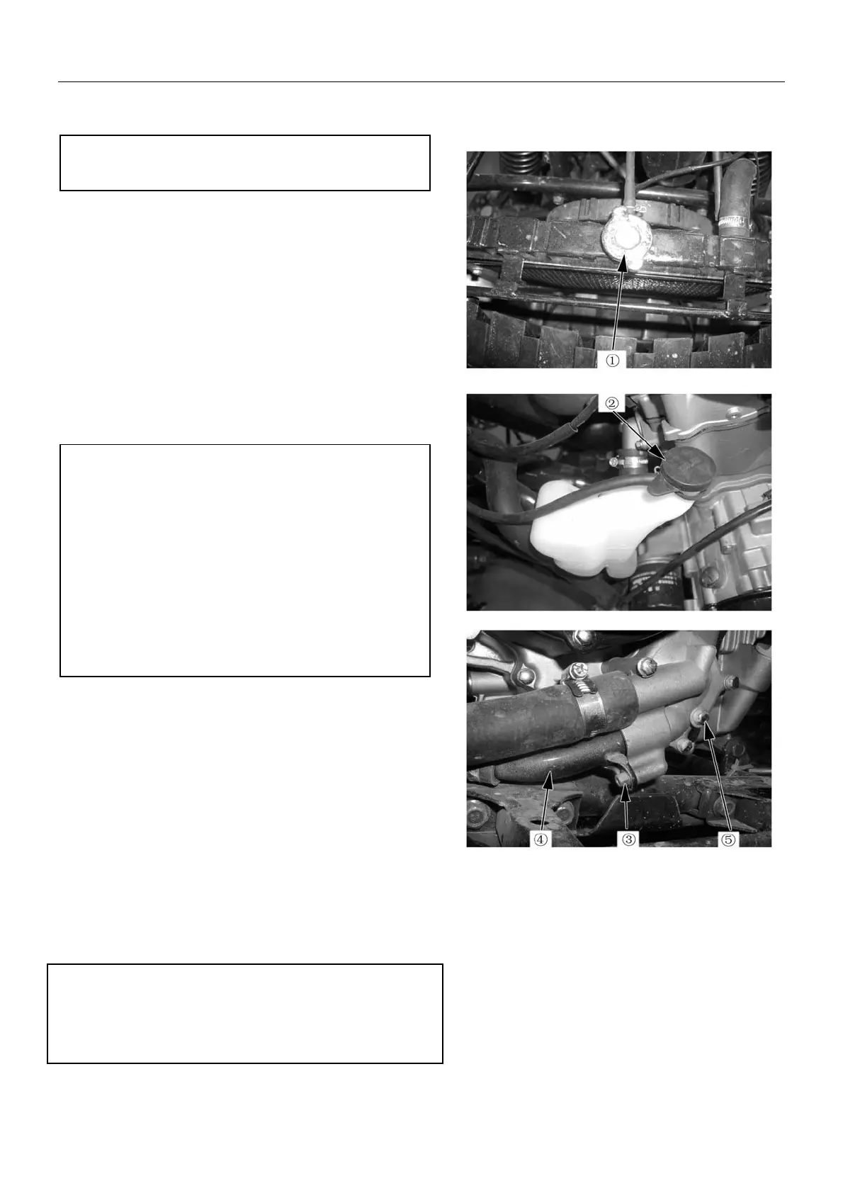 z Loosen bleed bolt on water pump, when coolant ⑤