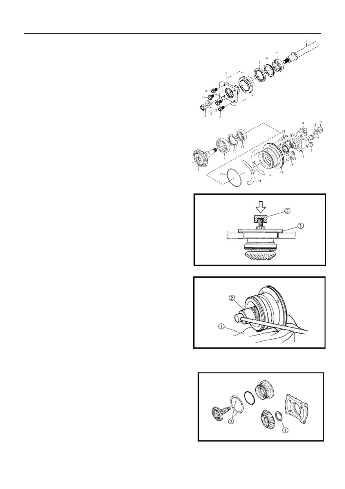 device ②. Fix bevel gear cover 14 and press out