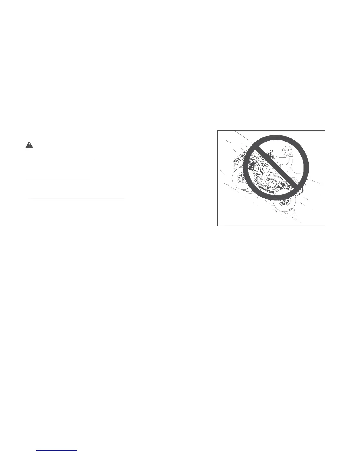 Never operate the ATV on hills steeper than 22° Never climb hills with excessively slippery or