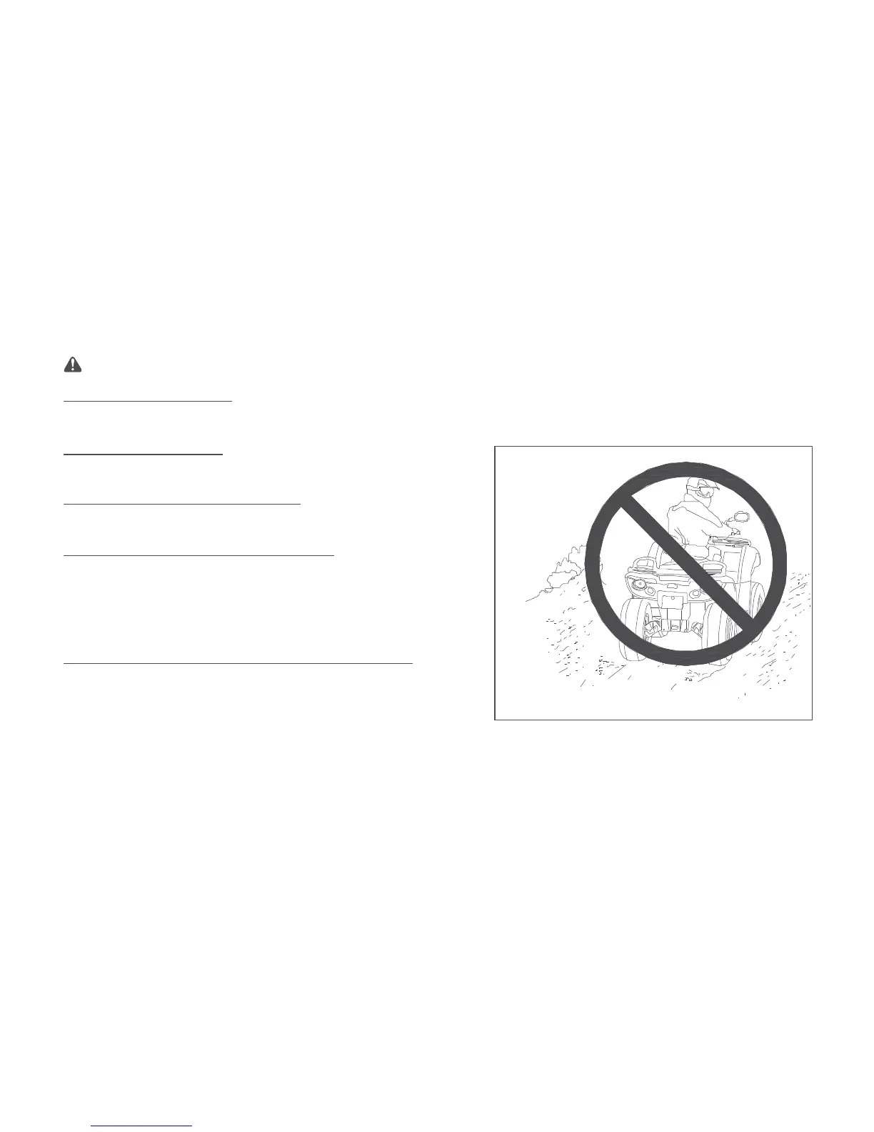 Dismount on uphill side, or to either side if ATV is pointed straight uphill.