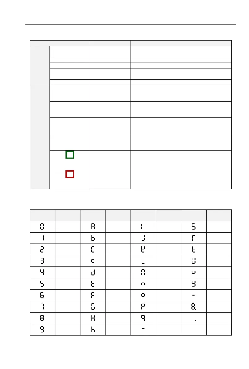 Table 4-3 Meanings of displayed characters