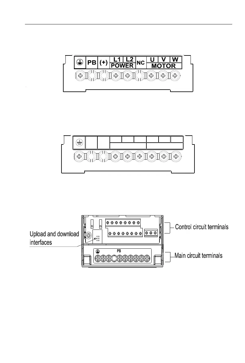 Single-phase 0.4~2.2KW Main Circuit Terminals