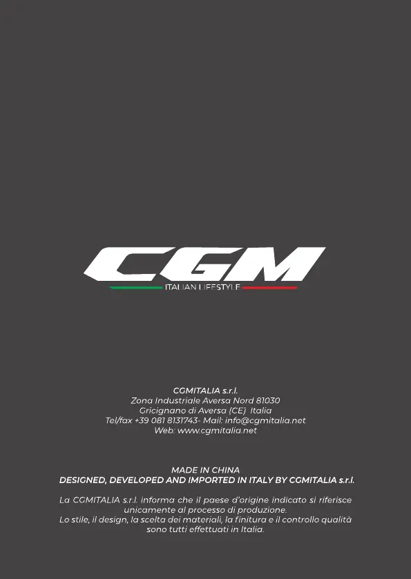 DESIGNED, DEVELOPED AND IMPORTED IN ITALY BY CGMITALIA s.r.l.