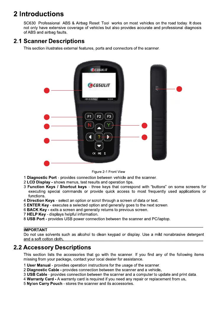 CGSULIT SC630 - Product Introduction; Scanner Features and Accessories