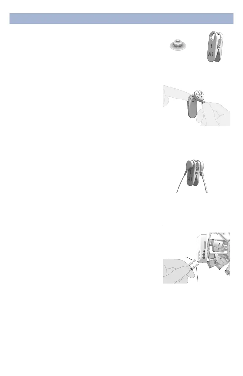6. Pinch the earclip to expose the single snap connector