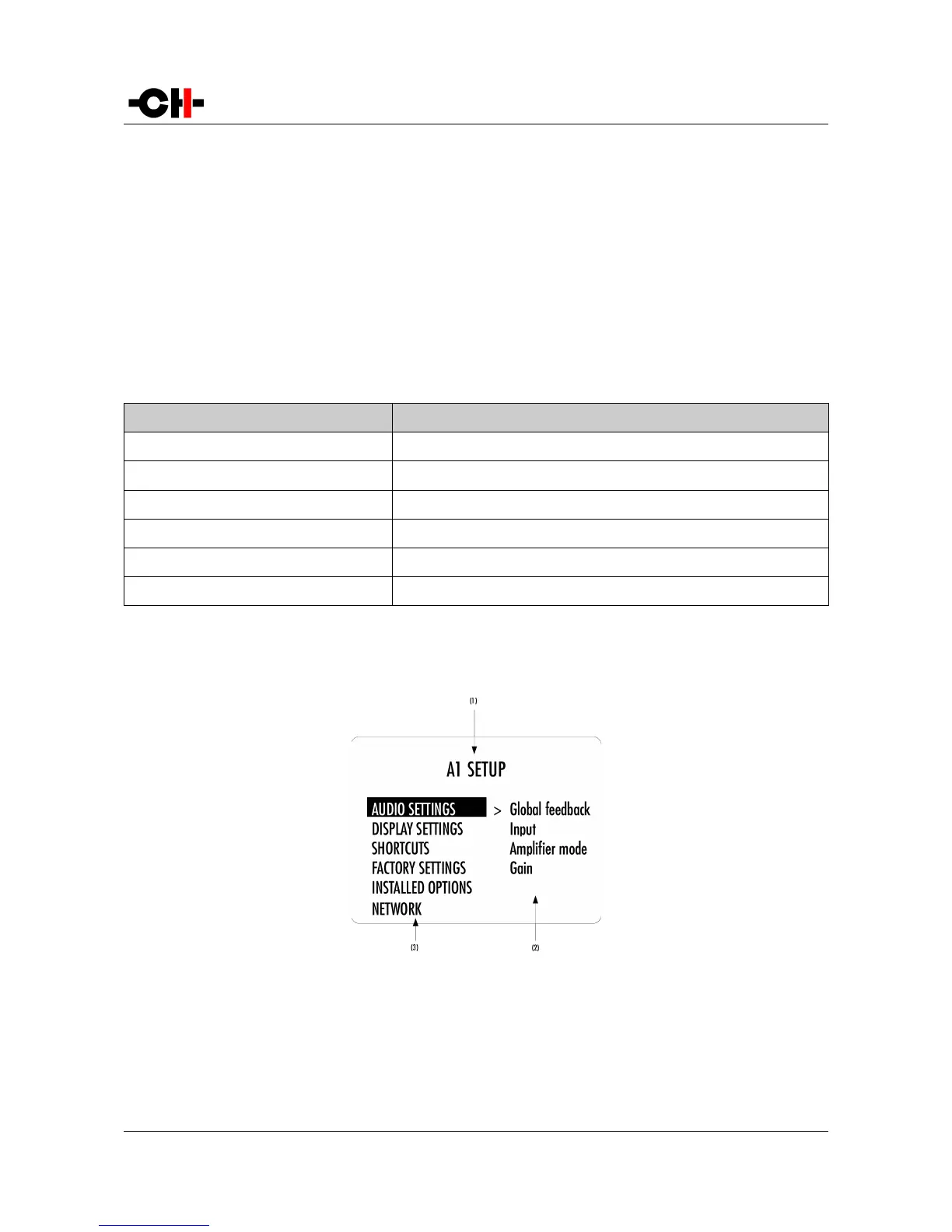 The Menu mode allows for Configuration and Setup of the A1 power amplifier through a set of menus. Menu mode is entered from