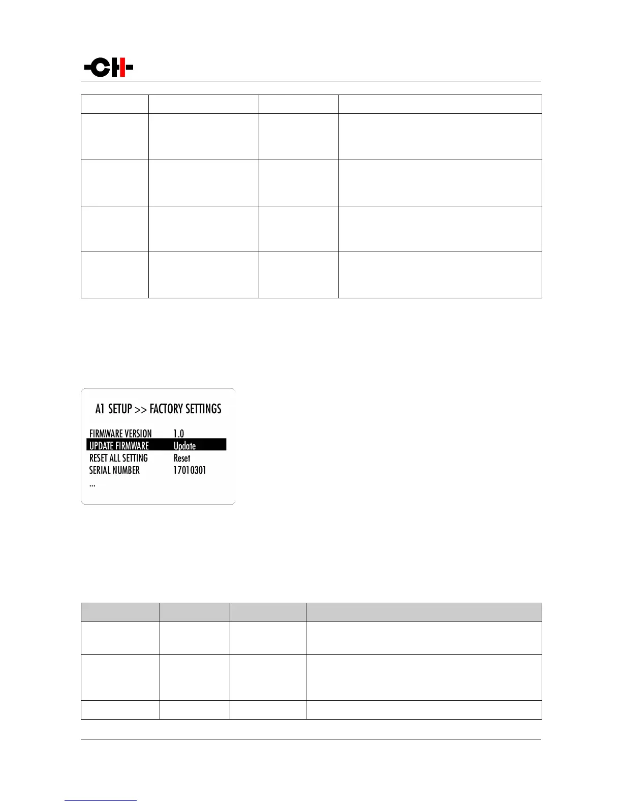 current A1 firmware version, to update the A1 firmware and to reset the unit to