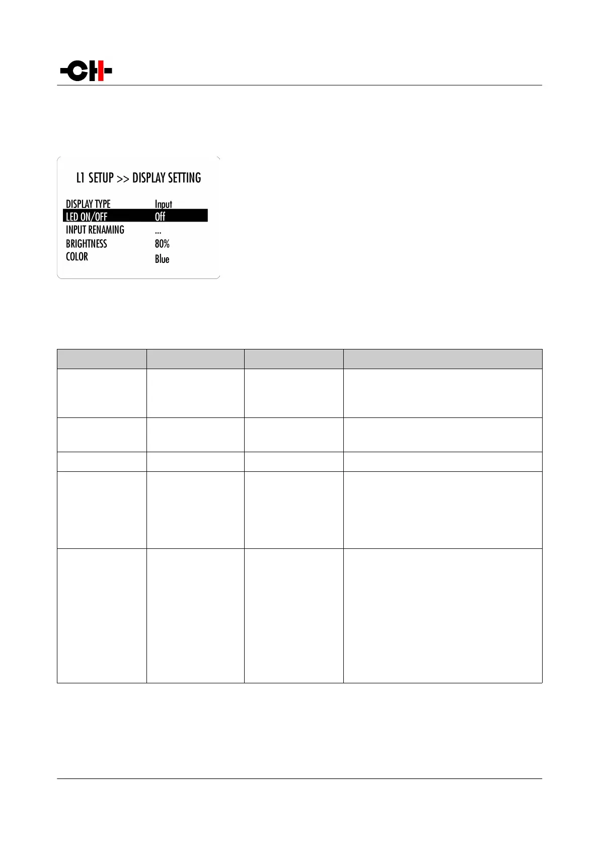 The L1 SETUP >> DISPLAY SETTING menu allows configuration of the display