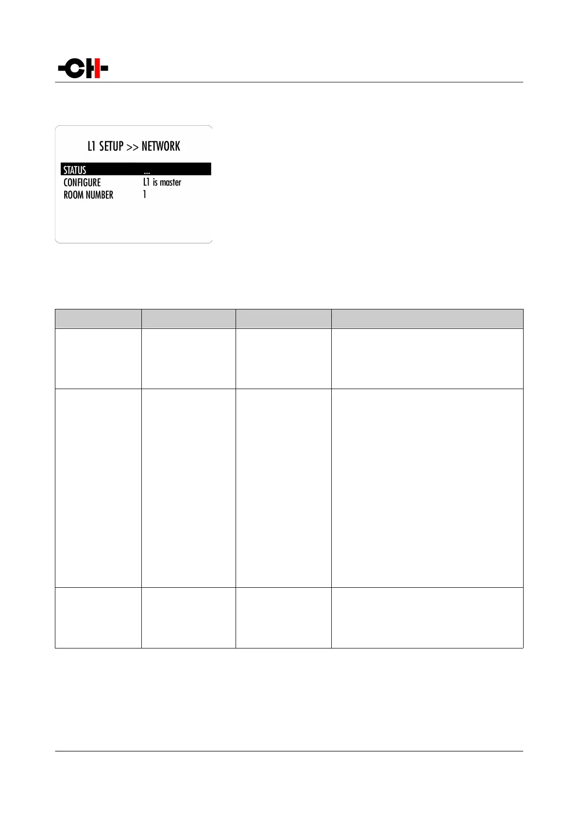 The L1 SETUP >> NETWORK menu display the information and allows the