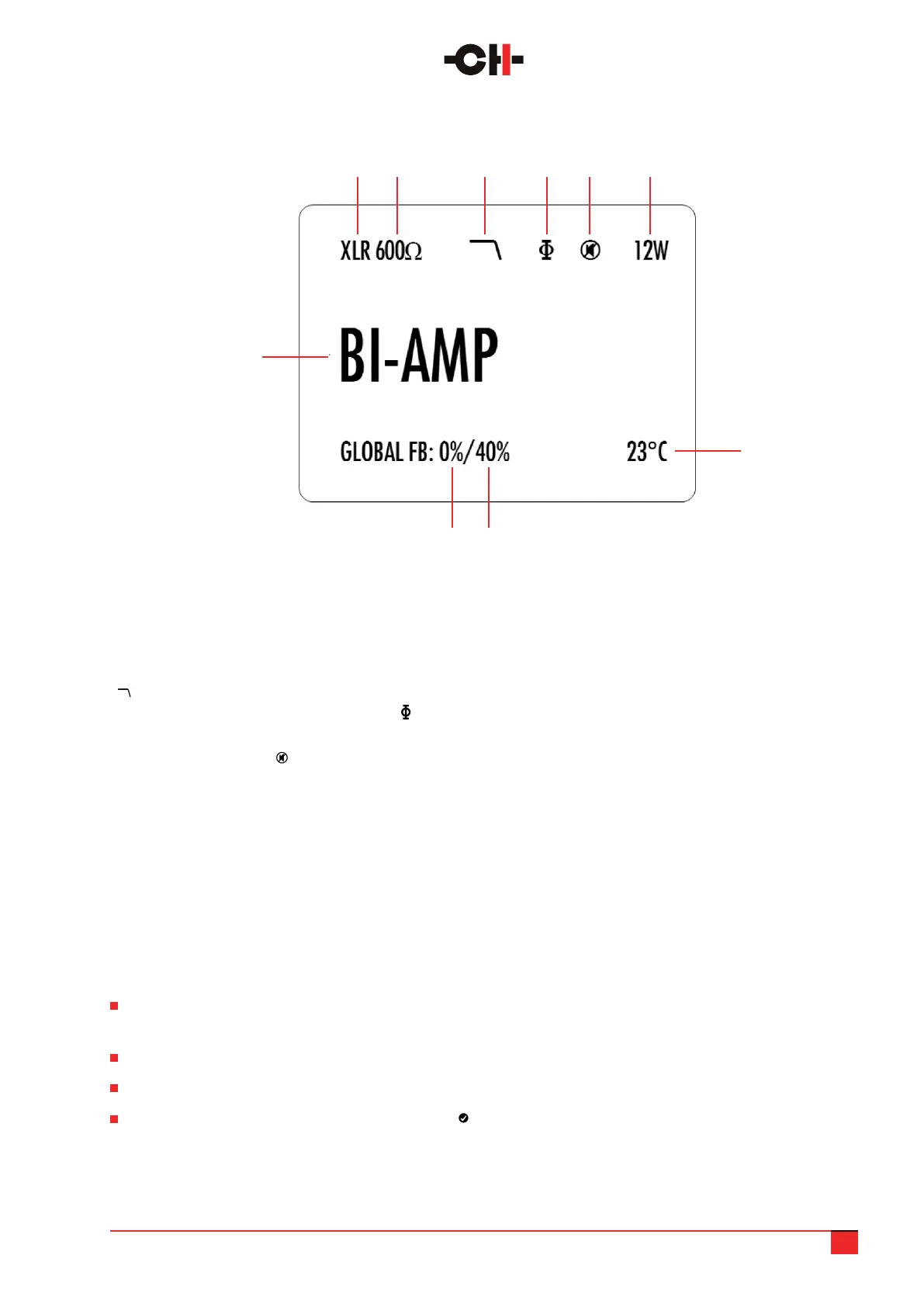 CH Control app) and viewed on the display. The amplier also offers Shortcuts to the most frequently used