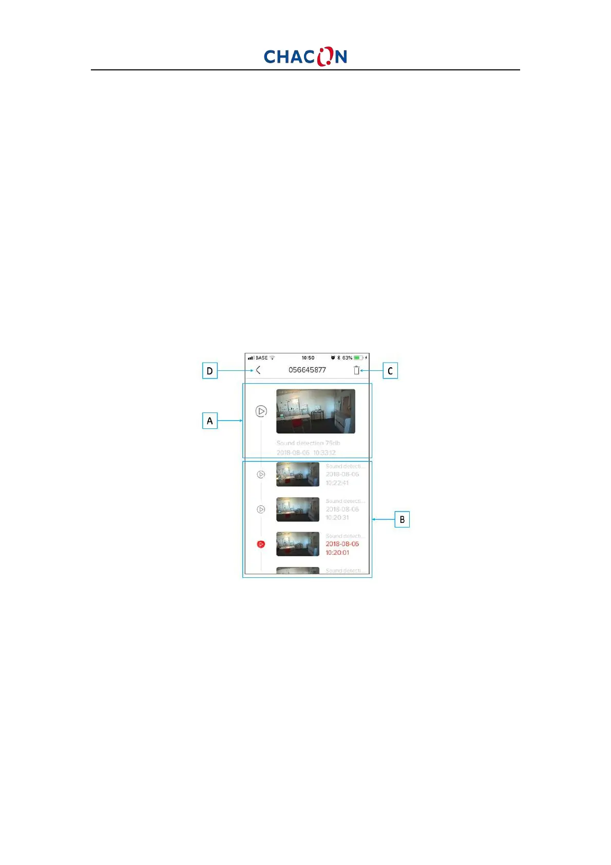 B: Registrazioni precedenti. Scorrere il dito per visualizzare tutte le