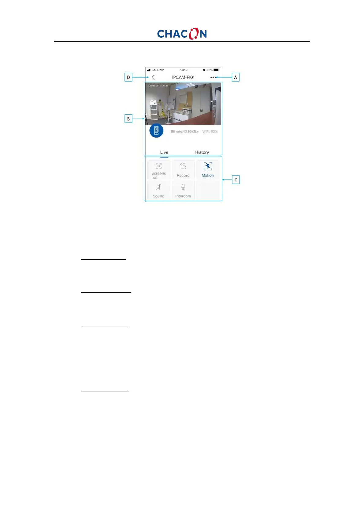 запись в приложении Chacon cam +. Затем нажмите «+» и зарегистрируйте