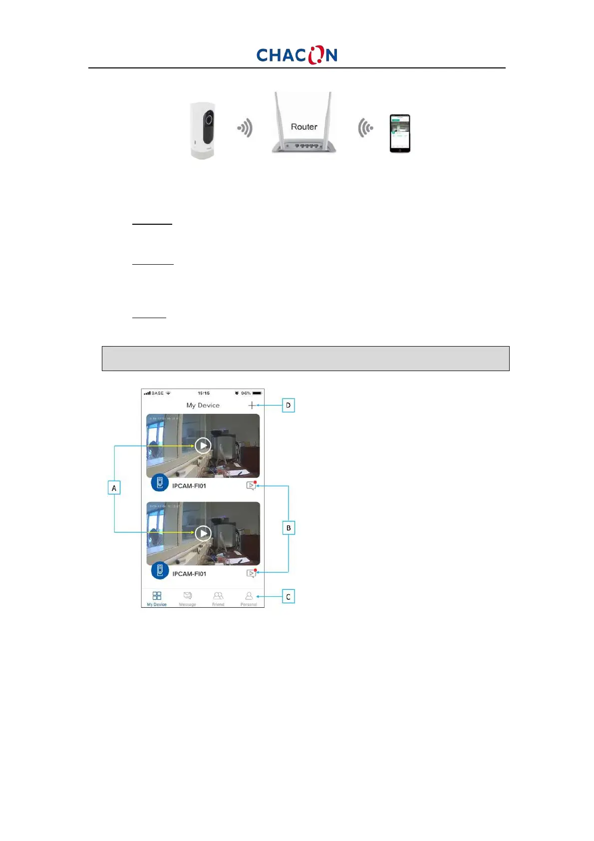 3. Adicione a câmara à aplicação clicando em “+”, escolha o dispositivo a adicionar e