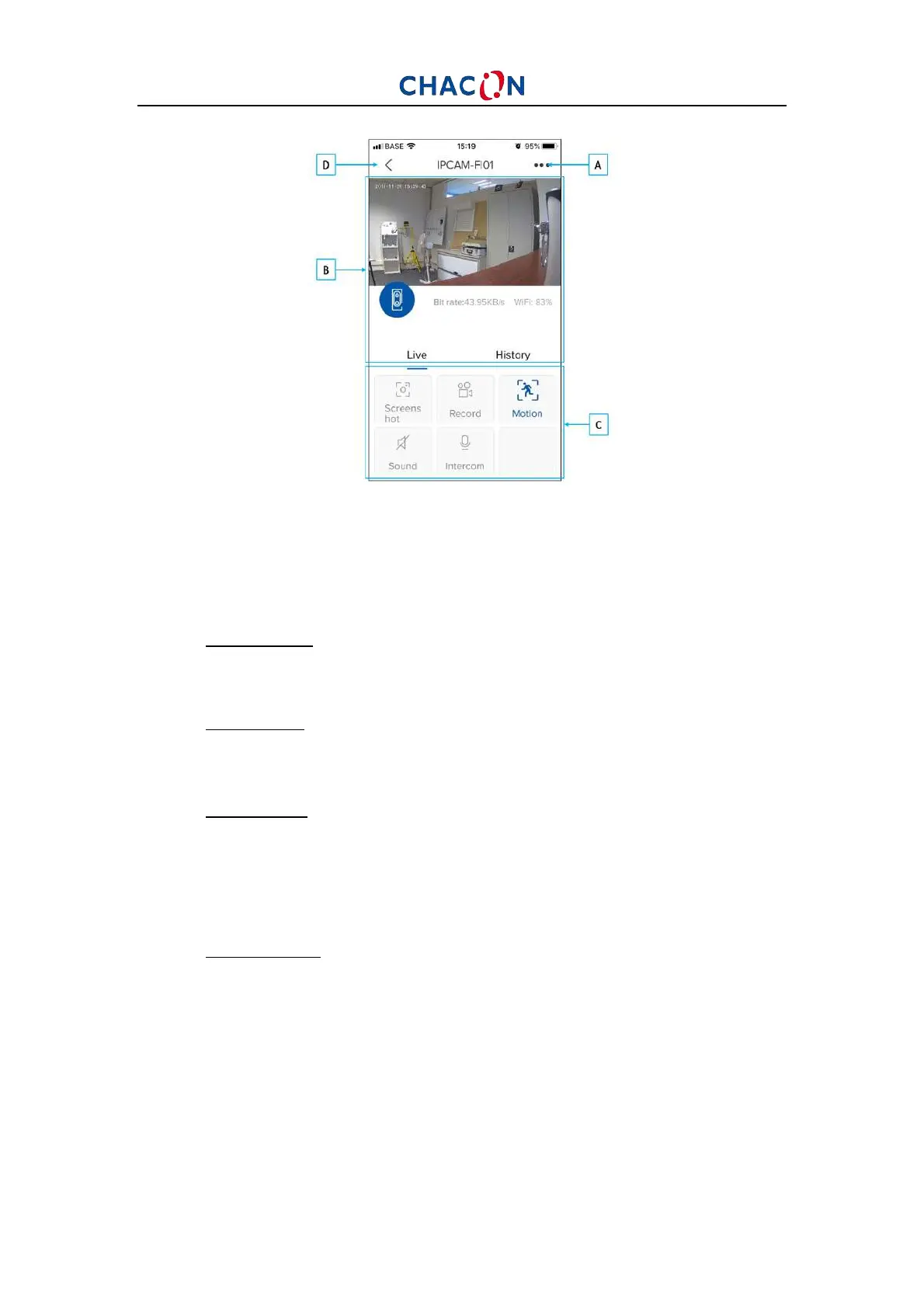 A : Paramètre de la caméra : vous permet de configurer toutes les fonctions de