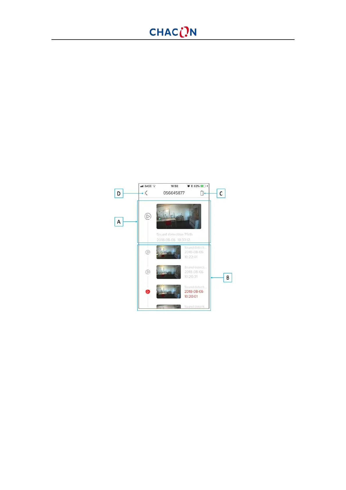 B: Grabaciones anteriores. Deslice los dedos hacia abajo para ver todas las