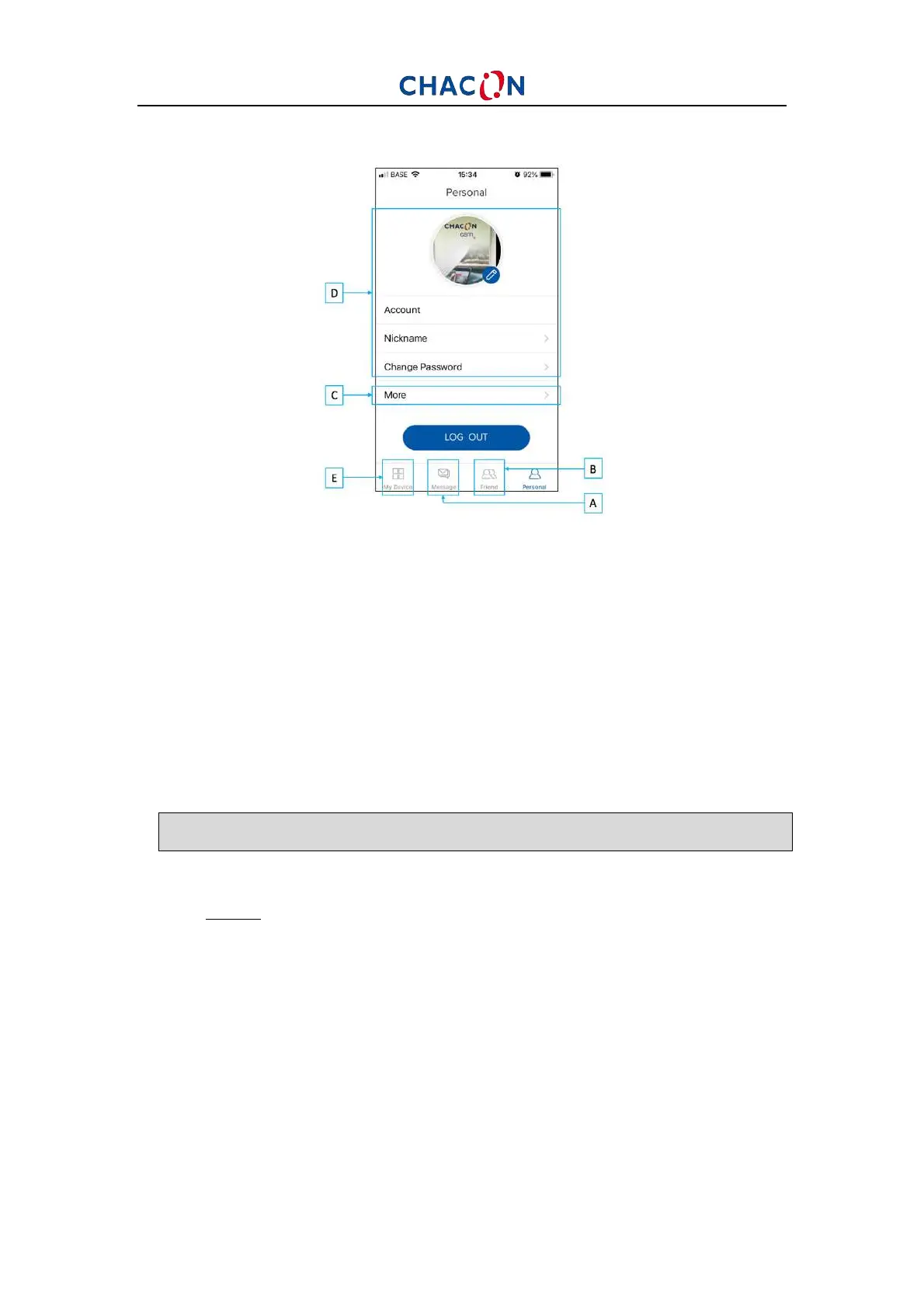 D: Cuenta: le permite gestionar su cuenta (modificar su imagen personal,