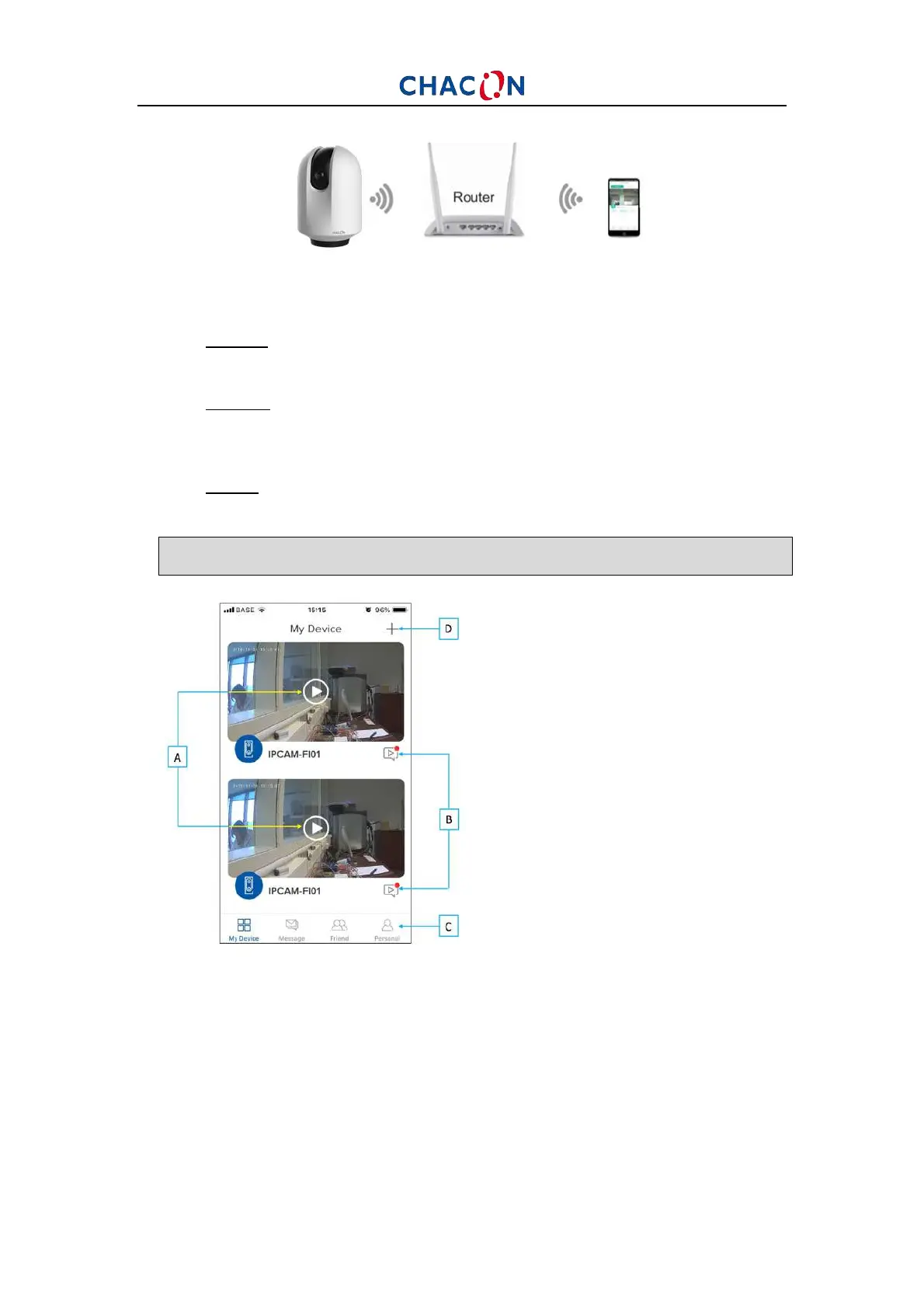 3. Adicione a câmara à aplicação clicando em “+”, escolha o dispositivo a adicionar e