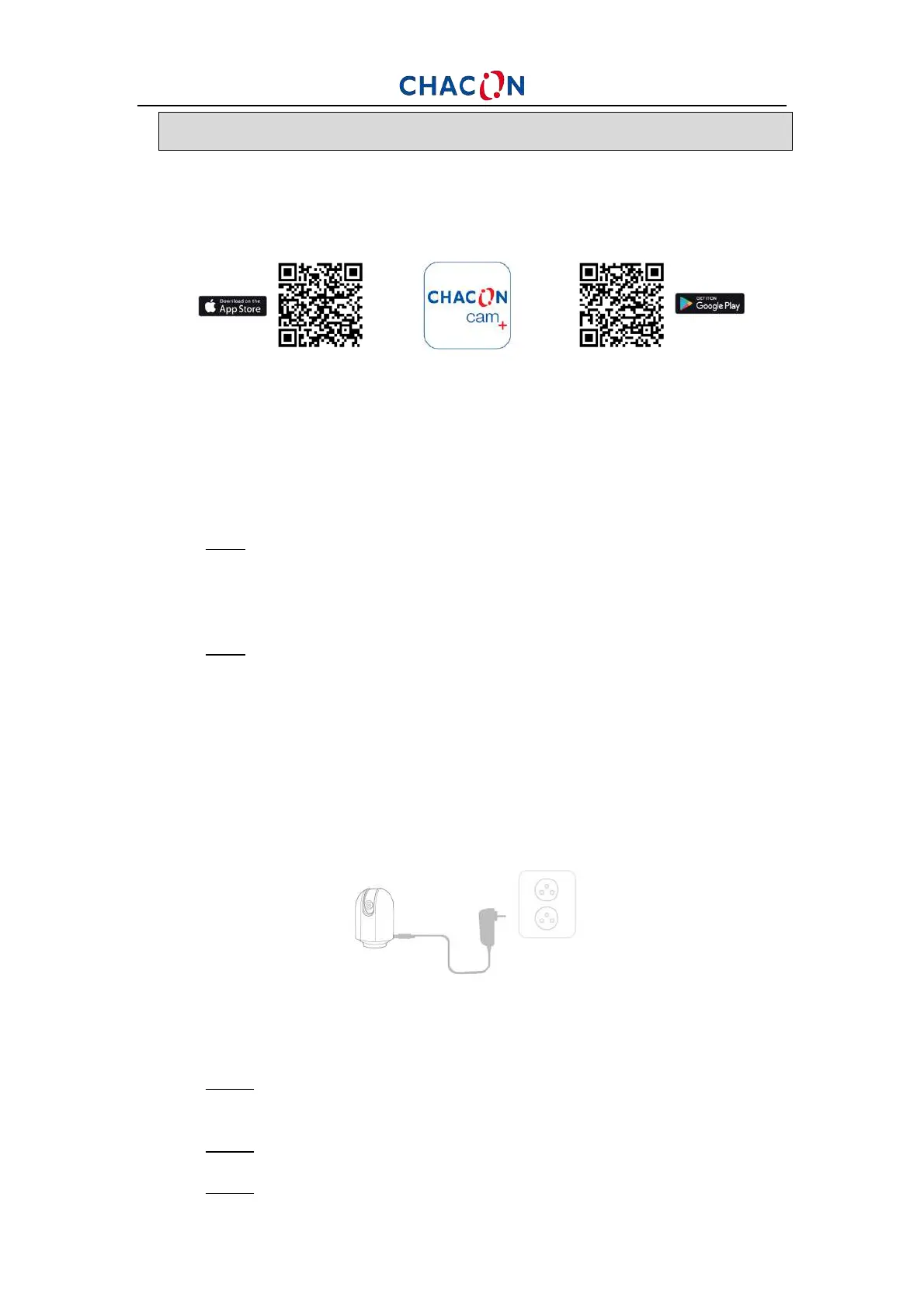 1. Connect the camera to the mains, making sure to push the cable home (It is